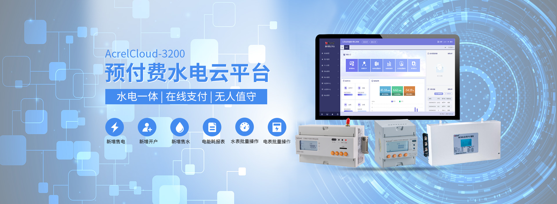 功能:对于分布不同省、地市或同地市不同区域的连锁商业、集团、百货、门店、物业、院校等业务分散,要求集中管理、线上支付,低额提醒、欠费告警。但常规的本地插卡付费、本地预付费并不能完全满足客户管理需求,预付费云平台应运而生。AcrelCloud-3200水电预付费云平台无缝集成商业、物业公司、集团企业、院校等分散布置的安科瑞DDSY/ADF系列电子式预付费电能表、阀控智能水表等,提供微信、支付宝、银联...